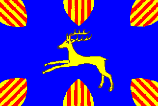I am sending the flag of Cerveruela, Ayuntamiento located in the autonomous community of Aragon in Spain. The flag, as well as the coat of arms, are canting. A deer is ciervo in Spanish. The flag is quite impressive. The flag and the coat of arms were adopted on the 8th June 1999. Source: Decreto 70/1999, de 8 de junio, del Gobierno de Aragón, por el que se autoriza al Ayuntamiento de Cerveruela, de la provincia de Zaragoza, para adoptar su escudo y bandera municipal.: