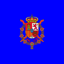 The Heir Prince's (Prince of Asturias') flag can be found in Calvo and Grávalos 1983. It is a square flag, dark blue field with the coat-of-arms in the middle. Spanish heraldry makes little if any use of cadency marks (like for instance the label on the Prince of Wales' coat-of-arms [see an image at the World Flag Database], making it different from the British sovereign's), so the only difference between the King's and the Heir Prince's arms is the crown. The King's coat-of-arms has a royal crown (i.e. with 8 arches of which 5 are visible) while the Prince's one has only 4 arches of which 3 are visible.