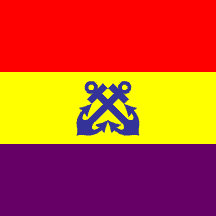 Square flag in the 1931-1939 national colours with two crossed blue anchors on the yellow stripe, height of the anchors' emblem 1/4 of the hoist.