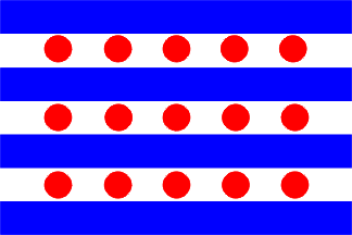 Naviera Churucca Hermanos S.A., Bilbao – flag with 7 horizontal stripes of blue and white; on all white stripes 5 red balls, distributed evenly.