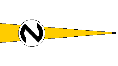 Dov Gutterman reported Navicon [broken link]: a triangular flag, horizontally "striped" in white-gold-white triangles. A white disc shifted to the hoist, charged with a black "N" in a circular font.
