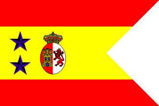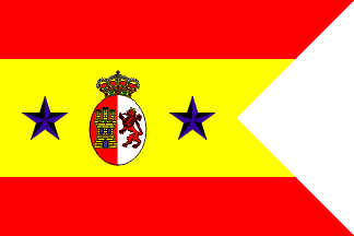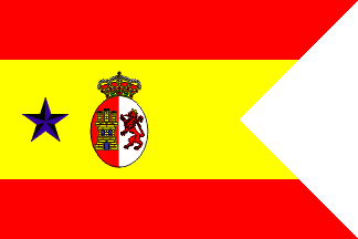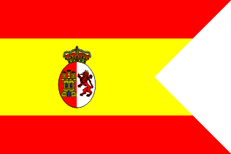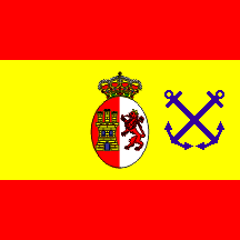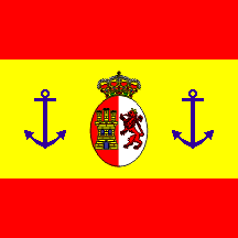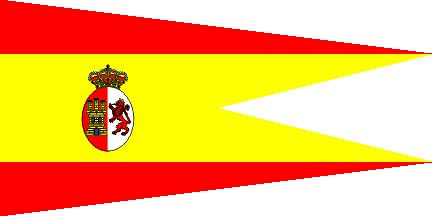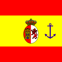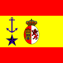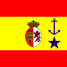 The Decree on rank flags of 18th February 1914 appears to have been the first time when the current system of rank flags with blue and red discs for Spanish admirals was adopted. The discs were smaller at the time, though, their diameter defined as 1/3 of the width of the yellow stripe, thus 1/6 of the hoist.