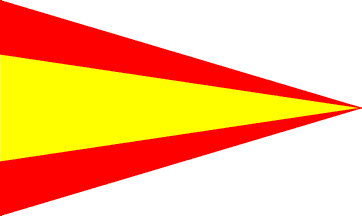Triangular pennant in the national colours, with both the red and yellow stripes tapering to the end.