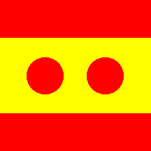 Vice Admiral without command: square national flag with two red discs placed horizontally in the yellow stripe.