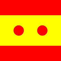 Square flag in the national colours with two red discs placed horizontally in the yellow stripe, their diameter 1/6 of the hoist.
