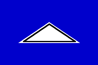 Proposal #3 is blue with a white triangle bordered in black placed in the middle of the flag.