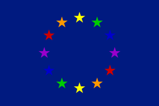 The "Gay Europen flag" is a standard European Union flag but with differently coloured stars: