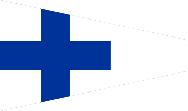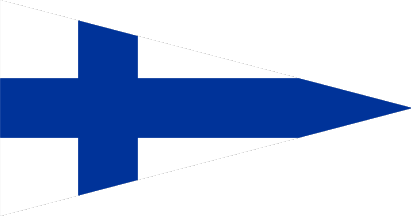 A triangular white pennant with a blue cross with a