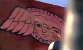 and is a kind of dull purplish red with an emblem, two winged human