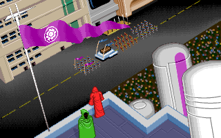 flags of the best positioned AI player's color. From the top of a nearby