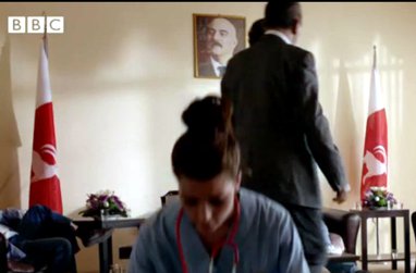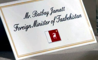 One of the themes of the first programme was the national Tazbek reverence for the ibex, a creature which accordingly features on the arms and flag of the state. The flag is seen several times through the programme and its appearance and indeed the general iconography and script used throughout the programme, all lend it a strong authenticity. Here are some screen shots from the programme: