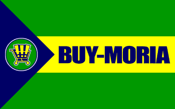 "BUY-MORIA" in dark blue extra-bold compact sans-serif capitals