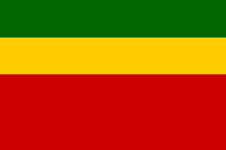 1:1:2 triband of green, yellow, and red, with a coat of arms centered (itself