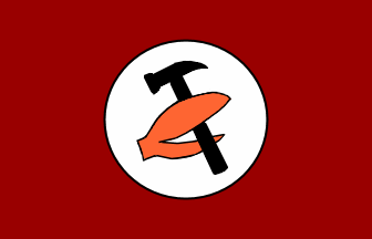 combine Nazi and Soviet symbols, with a white disk on a dark red field
