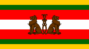 brown charge in the center consisting of two brown dogs or lions