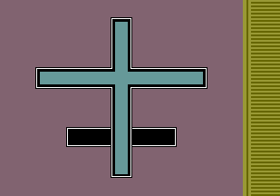 dark-lavender field with an odd sort of double cross, mostly turquoise