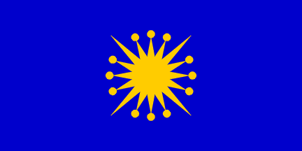 Commonwealth is blue with yellow starry object consisting 16 arms - 4