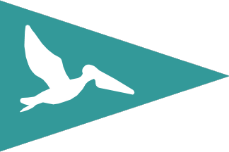 A pennant with white pelican(s) in flight on a sea-green field (sometimes given in singular, sometimes plural,