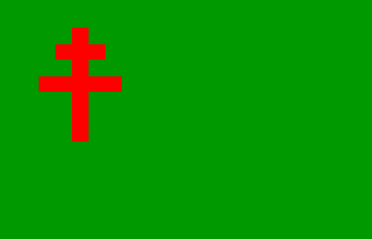 But what was the homeport of the yacht? In what sea-lists was it counted? In what Mediterranean harbor was its winter berth? Finally, what was its nationality? This no one knew, any more than was known the nationality of the Doctor. A green flag with the Red Cross in the upper angle fluttered on its gaff. But vainly would anyone search for this flag in reference books and compendia of the flags that can be encountered on the many seas and oceans of the terrestial globe.Green and red are, of course, Hungarian colors. "The upper angle" presumably means the upper hoist? It does not say what kind of cross, but given Sandorf's nationality, one naturally suggests itself unless "the Red Cross" is upposed to suggest a Swiss-style cross? A French-speaker's look at the original wording would be invaluable here. If any FOTW member who is literate in a language in which the book had an edition sometime within living memory is located near a well-stocked library and is not disinclined to wade through a few hundred pages of turgid Victorian prose, thank you in advance.