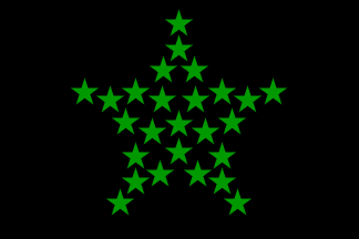 The book decribe "Green stars... patterned to make a larger star on a field of black" for the asteroid rebels of the Free Space Republic. No flag mentioned for the High Space Mandate they are rebelling against, or the High Space Union of an earlier revolt.