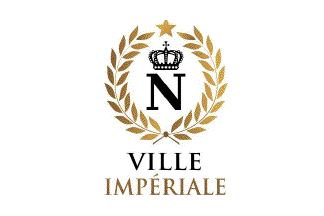 The flag of Ville Impériale (photo) is white with the network's emblem in the middle. The emblem is made of a "N" surmounted by an Imperial crown, all black, the whole surrounded by two golden wreath and a yellow star on top. Beneath is written "VILLE" (black letters) / "IMPÉRIALE" (golden letters).