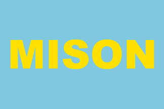 D'azur à la fasce haussée d'argent chargée du mot MISON en lettres