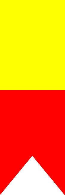 As shown in a TV report (magazine Par là, TMC network), the flag of Tende is a vertical, forked flag, horizontally divided yellow-red. The colours of the flag are taken from the muncipal arms.