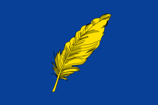 D'azur à la plume d'oie d'or posée en pal (Azure a goose feather or per pale),
