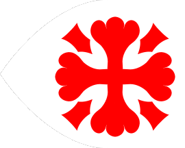 The 2005 Spanish illustrated transcription of the "Book" [f0f05] shows a white flag with a red cross whose arms have three-lobed petal-like ends and on each corner a ponty wedge pointing to the center; the flag is shown in the ogival default shape of this source.