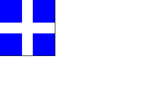 [dan05] shows the flag of Marseilles (No. 80, Vlag van Marselle) as white with a square blue canton charged with a white cross. The canton is separated from the main white field by a thin black fimbriation.