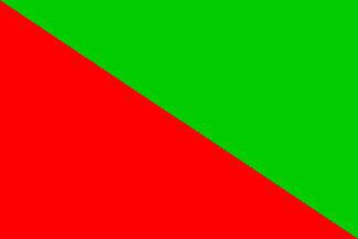 The flag of Tréveneuc, as reported by D. Kervella and M. Bodlore-Penlaez (Guide des drapeaux bretons et celtes), is divided green-red by the descending diagonal. The origin of the flag and the meaning of the colours are unknown.