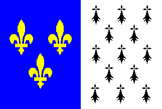 According to P. Rault (Les drapeaux bretons de 1188 à nos jours [rau98]), the flag currently in use in Brest is a banner of the municipal arms, parti de France et de Bretagne (per pale France and Brittany). The arms are dated 1696 and were "stolen" by Brest to the neighbouring city of Lesneven.