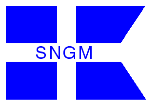 The burgee of the SNGM (photo) is swallow-tailed, blue with a white border and a white cross, whose horizontal arm is inscribed "SNGM" in blue letters.
