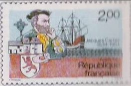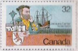 The coat of arms with the dog is shown on the postage stamps jointly released by Canada and France for the celebration of the 450th anniversary of Jacques Cartier's landing in Canada. Following an agreement signed by the French and the Canadian postal administrations on 1 January 1984, the stamps were released on 24 April 1984 in the two countries. There were designed by the Canadian Yves Paquin (drawing) and the French Claude Haley (engraver). The First Day release of the stamps took place in Saint-Malo and Québec on 20 April 1984. Two Canadian postmen were invited to Saint-Malo and sold there the Canadian stamp (face value, 32 cents; print run, 22 millions), whereas two French postmen were invited to Quebec and sold there the French stamp (face value, 2.00 francs; print run, 15 millions). On the postage stamps, the coat of arms is shown with a red dogue on a white field, which is probably an artistic license, the background of the shield being red. The description sheet of the Canadian Post says: l'ancien emblème de Saint-Malo: le dougue rampant.