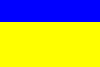 The flag of Châteaugiron (photo, Hervé Prat) is horizontally divided blue-yellow (1:3).