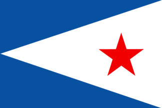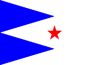 The Yacht-Club de Dinard (YCD) was registered on 5 September 1928. The flag of YCD is white with two blue rectangle triangles placed near the hoist and a red star placed in the white part. The burgee of YCD is a triangular version of the flag of the yacht club.