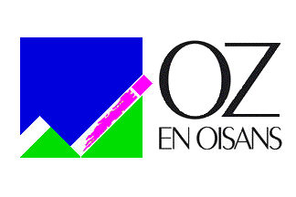 flanked on the right by the black writing "OZ / EN OISANS", "OZ" much