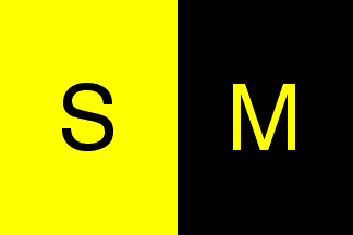 countercolored letters "S" and "M".
