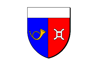 the dexter part, the post horn recalls Saint-Laurent-des-Eaux' post