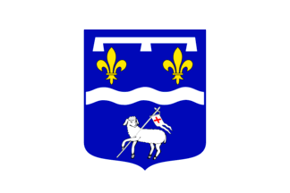 Keywords: loiret | saint-jean-le-blanc | label (white) | lamb: paschal | wave (white) | fleurs-de-lis: 2 (yellow) |