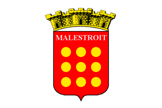 The flag of Malestroit, used by the Aúel Douar Bro Malestreg, the local folkloric group, is white with the municipal coat of arms in the middle.