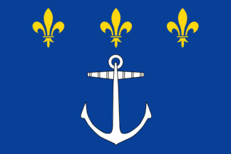 banner of the municipal arms, D'azur à l'ancre d'argent surmontée de trois fleurs de lis d'or ("Azure an anchor argent in chief three fleurs-de-lis or").