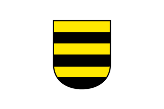 The municipal coat of arms is made of six yellow and black horizontal stripes.