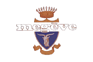 below the shield a scroll or. On the logo, the writing "megève", in