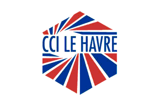 The building of CCI Le Havre, located on the Commerce Basin, flies the flag of the CCI, white with the logo of the institution. The logo is made of an hexagon, symbolizing France (the country is often nicknamed l'hexagone, which irritates the Bretons who are excluded of the hexagon) and divided into blue and red rays emerging in a spiral pattern from a white off-centred disc. The words "CCI LE HAVRE", in blue letters, are placed horizontally in the upper part of the logo.