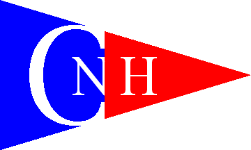 The burgee of CNH, as seen on a sticker on the front door of the swimming pool, is vertically divided blue-red. The white letters "CN"H are placed on the flag in a fairly elegant pattern.