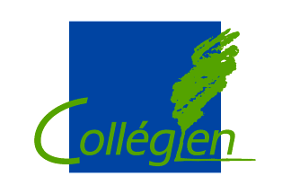 The flag of Collégien is white with the logotype of the municipality, made of a blue square and the name of the municipality in green, the I forming a tree.