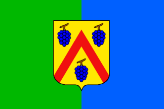 The flag of Verneuil-sur-Seine, as communicated by the municipal administration, is vertically divided green-blue with the municipal coat of arms in the middle.
