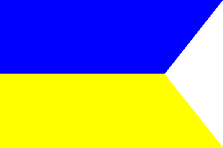 The colours of the flag do not seem to be derived from the municipal coat of arms, which is (Brian Timms):