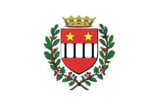 municipal coat of arms, surmonted by a crown and surrounded by two